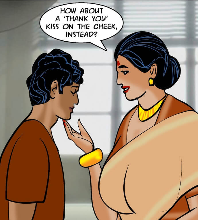 After allowing her therapist to bang her once again during her most recent appointment in episode 85, and subjected to yet another of her husband’s rages, Velamma has something of an epiphany: Her entire life has been lived at the mercy of the men in it, and she’s finally had enough of their bullshit! Deciding that she needs to be able to support herself to be fully independent, Vela attends a vocational training center. But with no real career goals in mind, she ends up in a welding program consisting entirely of men! Luckily, a sweet kid named Arjun offers to tutor her in the arts of arc welding. So when Arjun reveals a deficiency in his own education, Velamma is only too eager to serve as a tutor for him – but for the first time on her own terms!